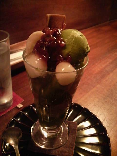 今日はワッフルの焼き型で餅を焼いて上に抹茶アイスを乗せたのを(ってメニューなんだっけか忘れた(^-^ゞ )。