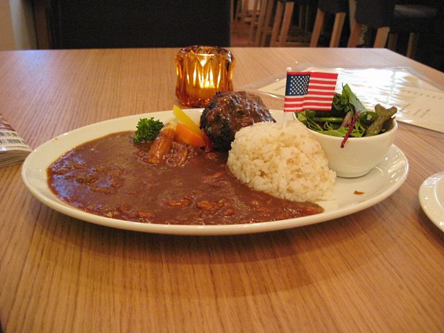 今日はハンバーグカレーで、って旗立てるのかよ・・・、これじゃお子様ランチっぽくなっちゃうじゃねーか・・・・