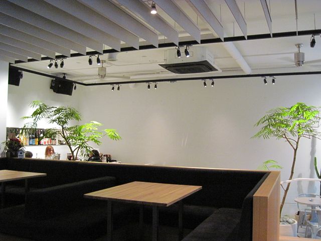 北側に少し仕切られた区画があり、ちょうど個室もどきで使えるフロア構成。厨房はほぼど真ん中のオープンな構成。