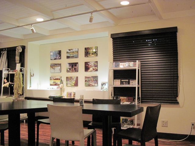 奥に入るとちょうど2棟ある建物の中庭的な場所にカフェがあり、それなりに建物の素質を活かしながらディスプレイされているような構成。