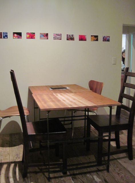 おや、この鍵穴は・・・。大きな一枚扉らしきものがテーブルになっているという変わり種。