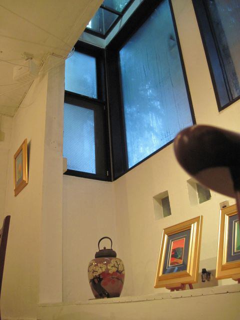 そして2Fも絡めた高い明かり取りも兼ねた窓。このあたりがいかにもデザイナー建築家作らしき雰囲気を伺わせる(そのあたりはカフェの施工主のページにも)。