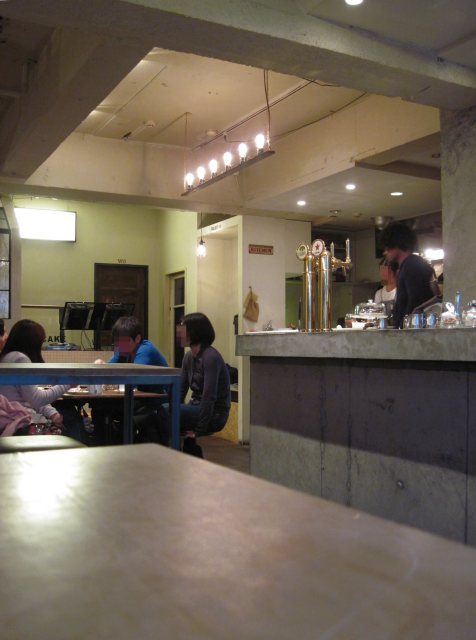 コンクリ打ちっぱなしのカウンターと高い椅子とテーブル。モノトーンで占められた店内。相変わらず場所がそこそこ良いこともあってほぼ満席。