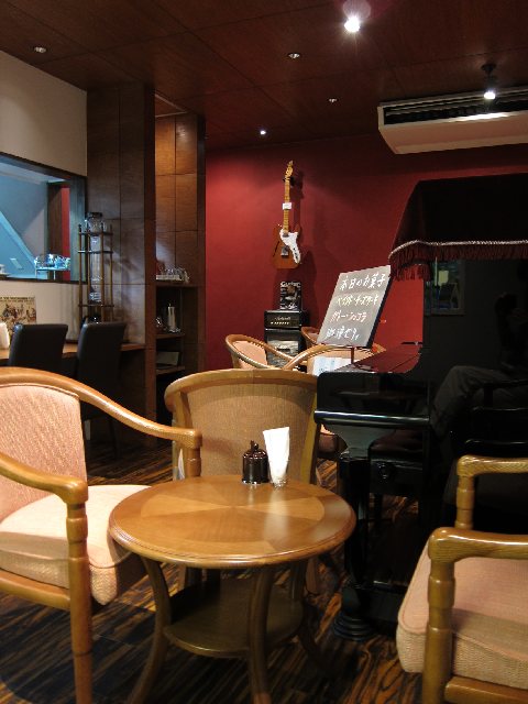 店内は前回と変わらず基本豆売が主なのでこじんまりと。アップライトピアノとエレキが飾ってあるのも前回と変わらず。