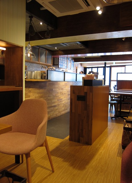 入ると奥に長く右手中央から奥にかけてカウンターとキッチン、手前がカウンター席、奥がテーブル席となっている。しかしながらそのハコ故に自由が丘店ほど大きくはない。
