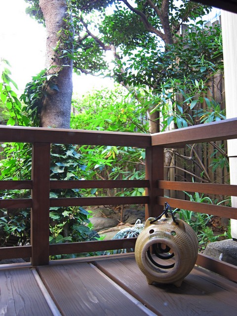 奥には明かり取りを兼ねて中庭が作られており、定番の蚊取りブタが鎮座。
