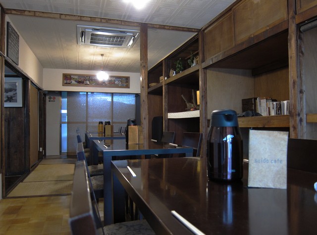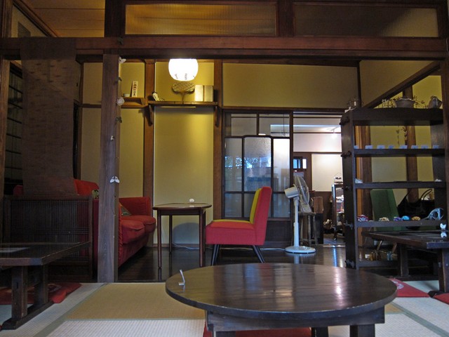 客席自体は靴を脱いで西隣の建屋にあり、畳間と板間をぶちぬいて1フロアとし、元々押入れっぽい場所を使ってこれまたギャラリーとなっている。その前にテーブルがズラーッと20席以上はあろうか、ランチスタート時ということもありお昼の客を待ち受ける体制。
