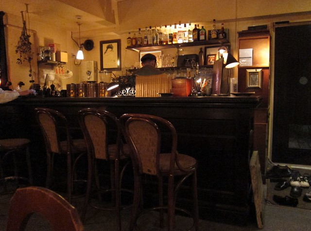 先の頃と椅子の配置は少々変わったが、7席だけのカリモク60Kチェアと元のハコの雰囲気はそのまま。ただし奥の隠れ席なさすがにやめたよう。