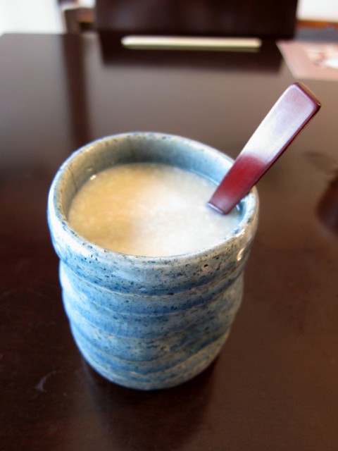 お後に冷やし甘酒を。丼の飯はやはり屋号が酢飯屋だけに、酢飯。