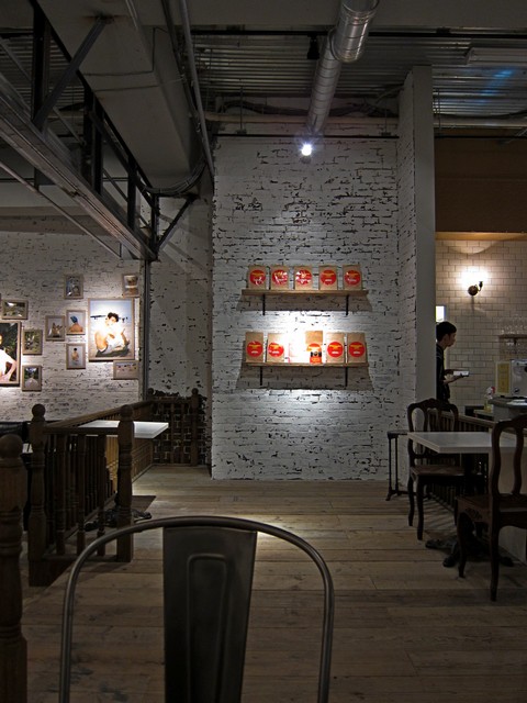 1Fはほぼカウンターのみとなっており、キャッシュオンスタイルなので、モノを受け取って、奥の階段を上がって2Fへ。