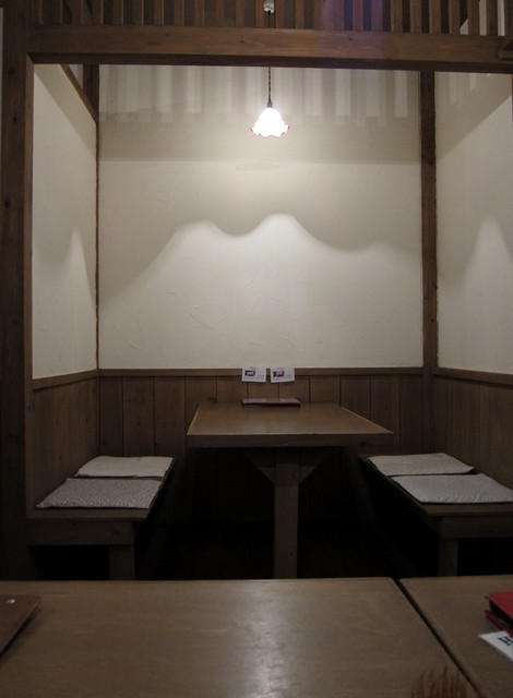 玄関を上がって引き戸を引くと…、床の間のある和室と右手にもう1間の計2間が客席となる。だいたい20席弱ぐらいであろうか。古民家お家系らしく適度に落ち着いた空間。