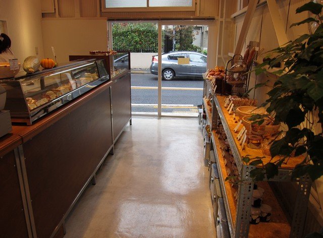 入口は五日市街道側と路地側にあるが、五日市街道側から入ると左にbakery、右手のガラスケースに菓子類とレジといった構成。そしてカウンター奥に工房が姿を現す。
