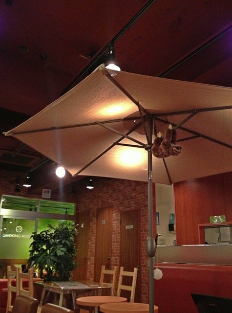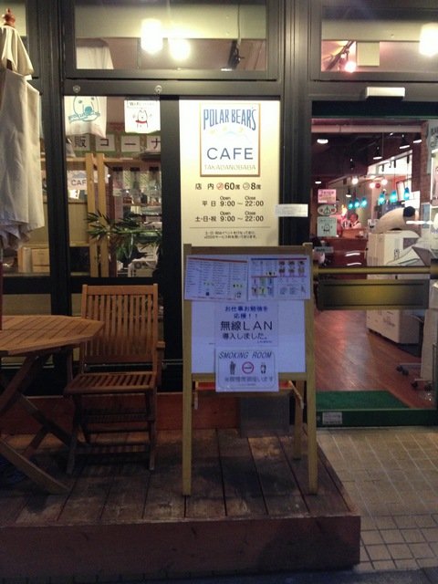 店内はほぼまんま前のお店にしろくまカフェのキャラの装飾を少々取ってつけたような様子…って前のカフェと運営元が同じ模様。奥の方の扉の奥は喫煙フロアとなっている。あとはほんと、以前のお店とまんまの席だな…