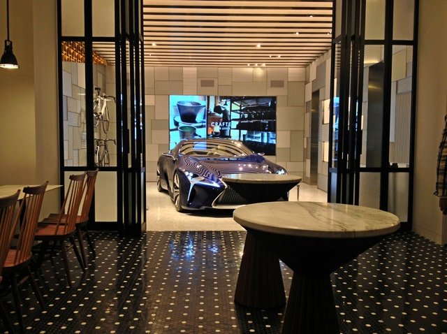 カフェ奥のガレージにはコンセプトカーであるLF-LCが。