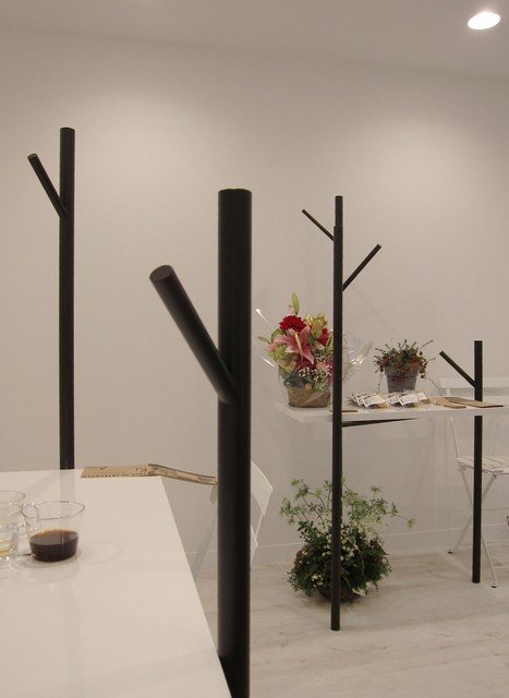 真っ白の店内に黒い木が生えたような棒が立て込むお店。あれ?こんな店あったけか?と見てみると、どうやらカフェらしい。ってことでちょいと寄ってみることに。