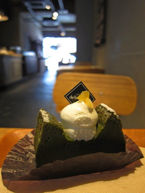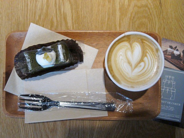 季節のテリーヌショコラ(多分抹茶)とラテを。どちらもしっかり、ショコラは超濃厚。