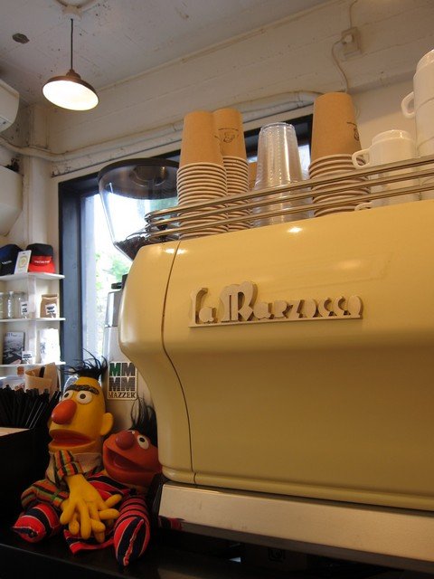 入ると以前と同じくカウンターにはLA MARZOCCOのGB/5が鎮座。少々変わったところといえばカウンターと反対側に豆売りのコーナーが増えている。(お客さんイパーイなのでこれ以降店内の写真は割愛)