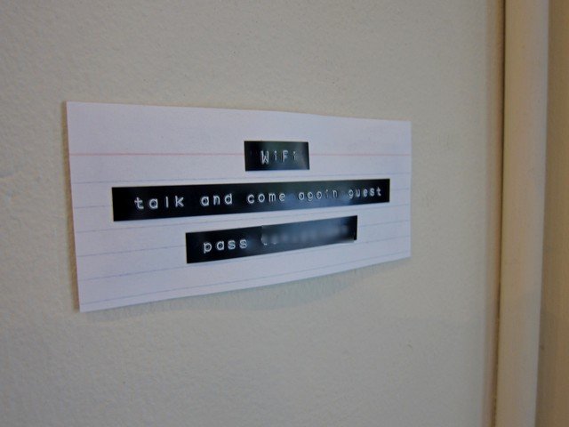 おおー、波キタ━━━━(・∀・)━━━━!! Wi-FiのPASSを打ったダイモテープ(テープラベルライターでなくて「ダイモテープ」というのがちょっとしたレトロ感があってよろし)が。