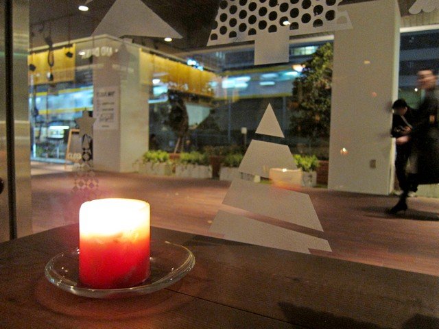 この日はキャンドルナイトイベントを行っていたのでかなり暗めの状態。西端にはソファー席があり、写真の木の裏手にはキッズスペースが設けられている模様。