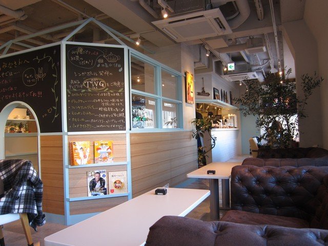 こちら、左側が運営元が同じ不動産店、右手がカフェ&レストランといったスタイルになっており、一部(と言っても僅かだが)はフロア続きとなっている。