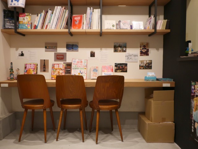 入ると奥に長く手前の大テーブルに台湾雑貨等が並べられる。カフェはその奥突き当たり。