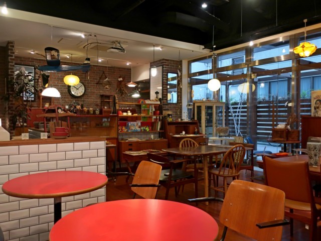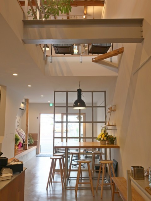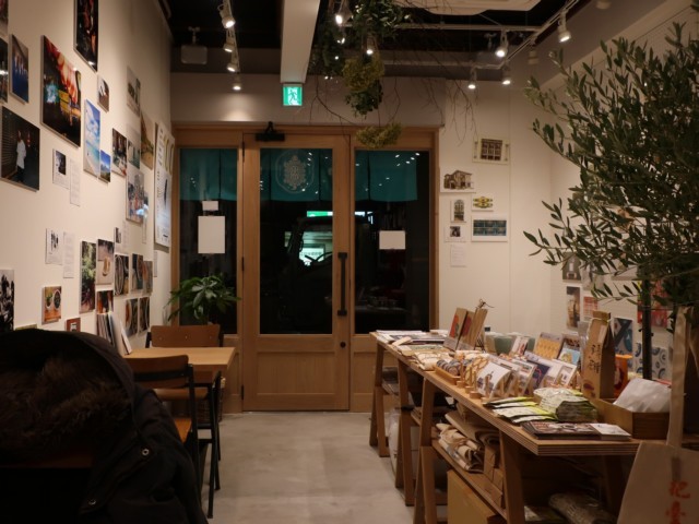 客席は中程から奥にかけて一段下がってテーブル席が20席ほど。南側と物販仕切り部分にカウンター席が10数席と場所に比して比較的大箱なスタイル。