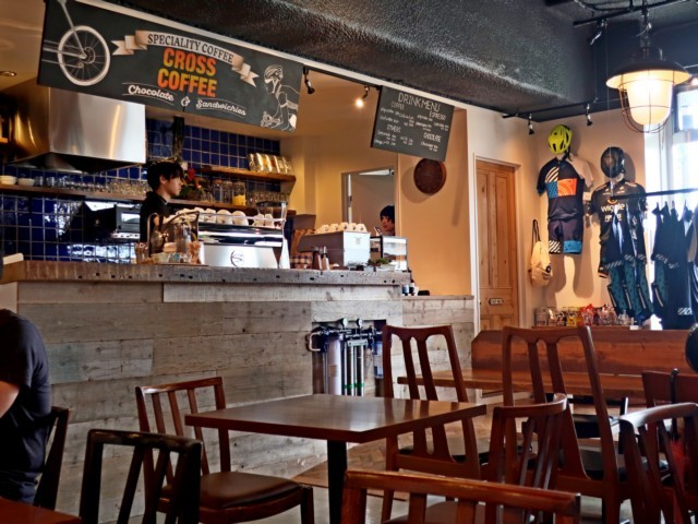 今回はこちら、CROSS COFFEE(クロスコーヒー)、2017年8月にopenしたサイクルウェアの直営ショップ&カフェである。