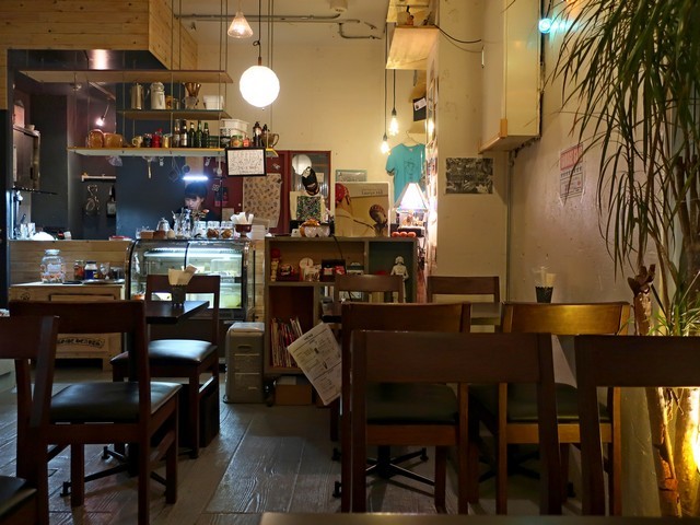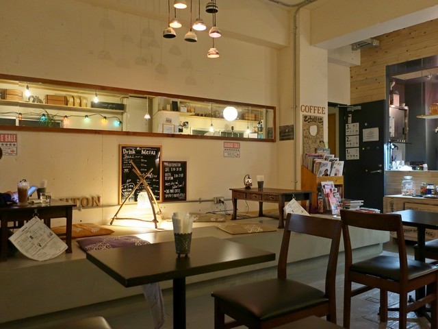 客席はその南側と裏面にあり、南側はローテーブルのソファー席を軸として20数席ほど。