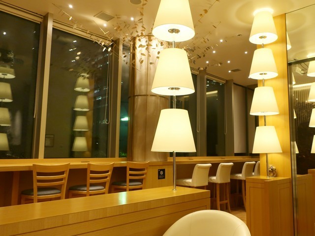 左手の壁面側にカウンターがあり、奥に有るマシンはSynessoのCyncraか。夜はシャンパンバーということで棚にはシャンパンが並ぶ。