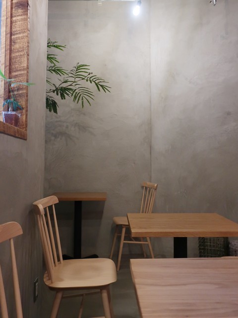 入ると外から見えるとおり、10席ほどの非常にこじんまりとしたハコ、だがあの系列の他店とはまた雰囲気に。種類はバラバラなチェアながらゆったり目の椅子がチョイスされている。キッチンは北側(写真左手)に。