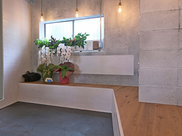 客席はT字状に構成されており、キッチン前のカウンター席がぐるっと16席ほど。水回りの配管のせいか何故か中央部分が2段ほど上がったデッキになっており、右手にテーブル席、そして奥の窓側左手は2段降りてテーブル席が配される。