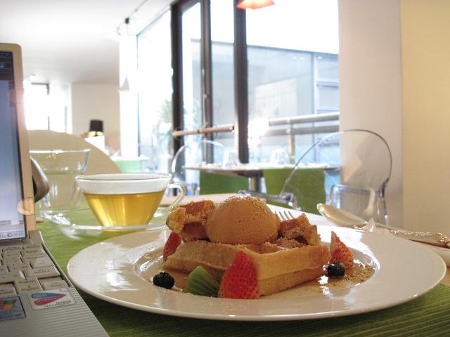 今日はワッフルにアイス乗せ。これにそこそこの紅茶でわりにお得な値段だった気が。値段以上にボリュームもしっかりしているといったイメージ。