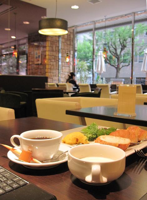 朝はバイキング形式の朝食メニューとなっており、そこそこの品揃えで\600だからそれなりに安い。客層も休日ということもあり仕事もちの女性が数名、と非常に落ち着いている。と思いきやどうやらここの賃貸マンションの住居人はここの朝食が無料なんだそうな・・・。