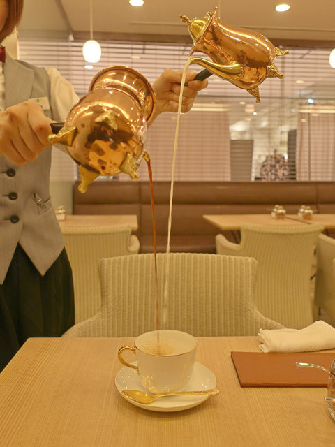 おおー、例のミルクとコーヒーを注ぐパフォーマンスが来て…