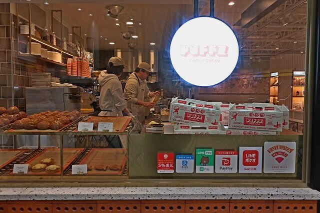 左手は同系列のシュークリームショップ、PUFFZが同居し、takeoutカウンターを併設する。