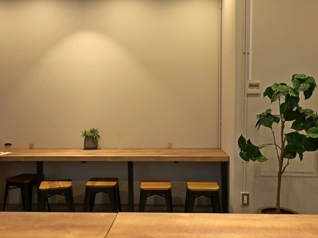 客席は東側壁面に沿ってテーブル席が10席そこそこと北側の窓際にカウンター席が4席ほど。各テーブル脇の壁面と、カウンター席のテーブル裏にはコンセントが設置され、ノマド需要もバッチリ。