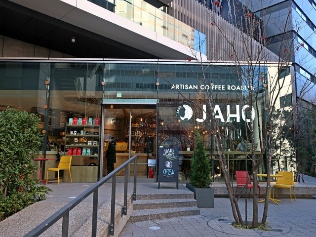 Jaho Coffee Roaster & Wine Bar(ヤホ コーヒーロースターアンドワインバー)、2018年12月下旬にopenした、中目黒にあるカフェの2号店である。通り側から奥の入口にかけてスロープがあり、入口手前左右にテラス席が少々。