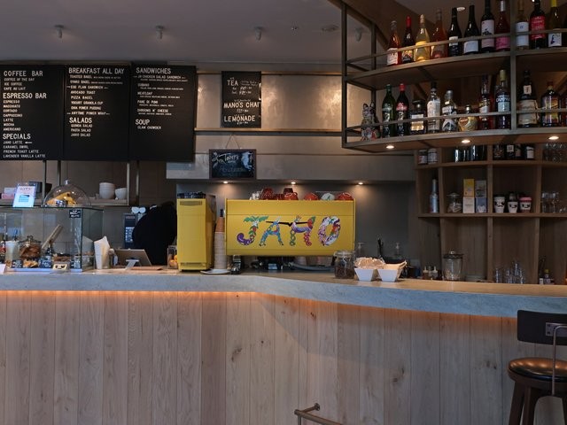 中央に大きくカウンターがあり、マシンはこの系列指定のLA MARZOCCOのLinea PB、脇にMAZZERのグラインダといった構成でキャッシュオンスタイルをとる。
