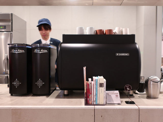 北側から入って右手一面にカウンターがあり、マシンは都内でもレアなSANREMOのVERONA RS。(なお、バリスタ氏は開店時に毎度台湾から助っ人として現れるM氏)。