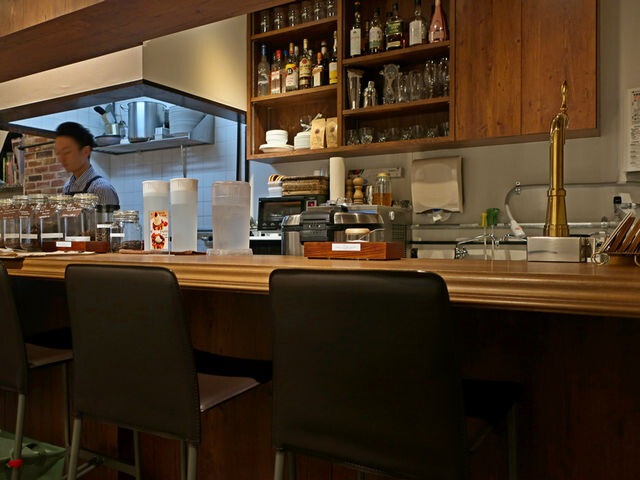 お店は奥に長く右手にテーブル席が3組6席、左手のキッチン前にカウンター席が6席ほどのシンプルな構成。