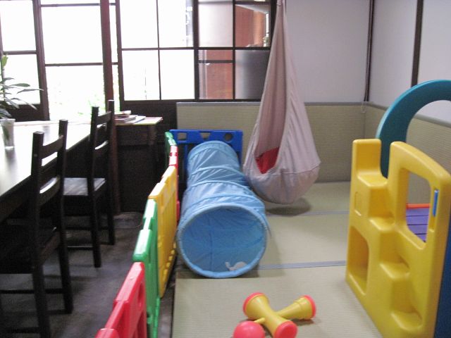 店内は予想外にも4畳ほどだがキッズスペースもあったり、奥は中庭。