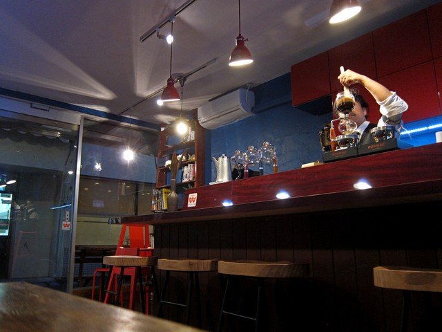 カウンター上にはBONMACのサイフォンヒーターにサイフォンが。そして店主が手際良くコーヒーを淹れていく。