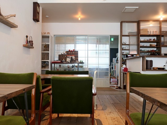 客席は以前と変わらず学校の実習系のテーブル席と椅子、左手にソファー席を8席ほど、南側窓際はカウンター席といった構成は変わらず。